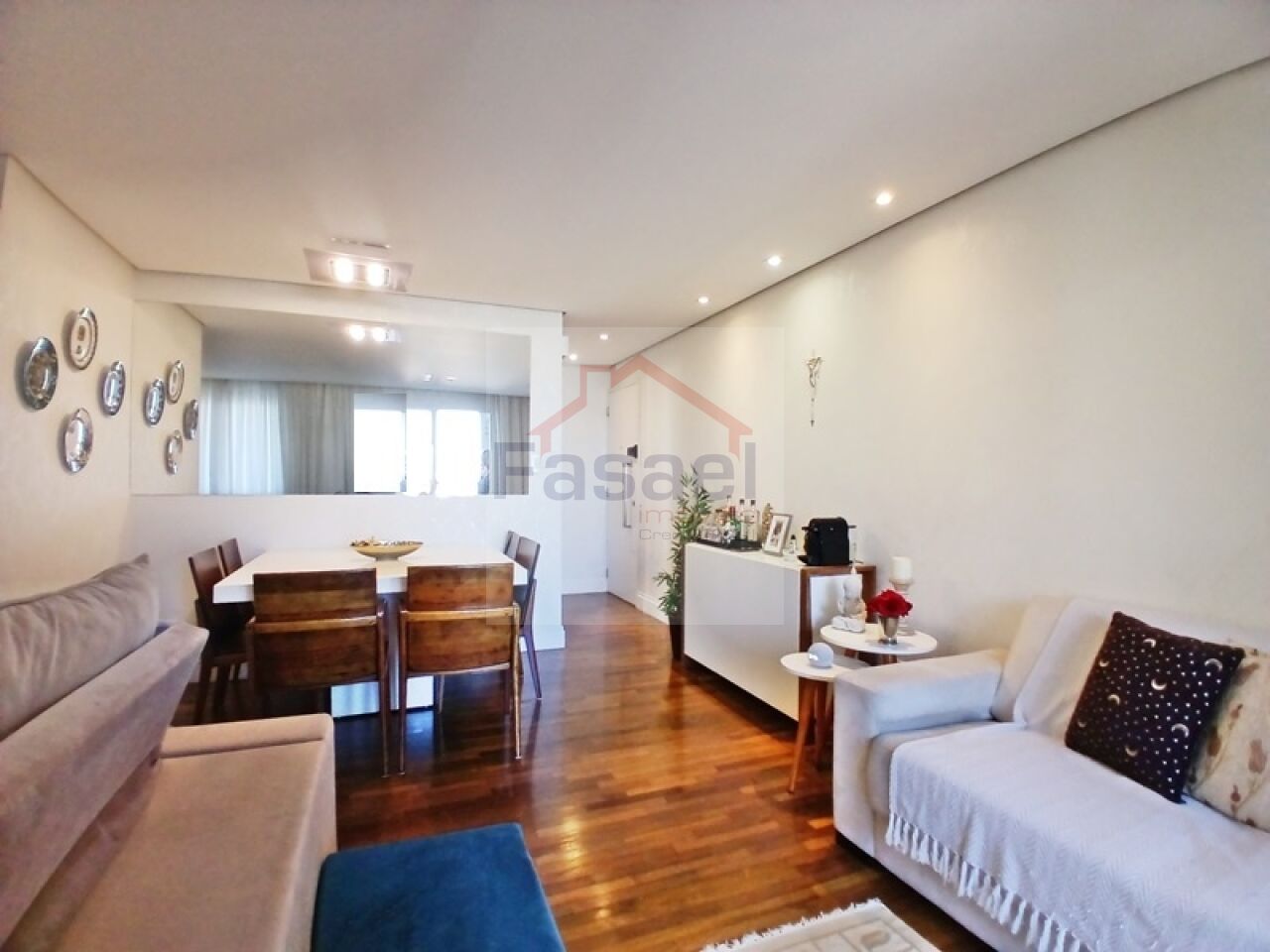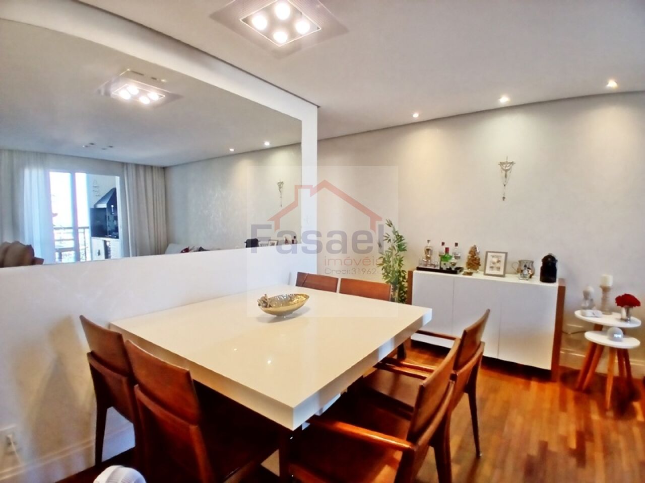 A sala ampliada com 3 ambientes integra perfeitamente convivência e sofisticação, com iluminação embutida que valoriza cada detalhe, além de um lavabo espaçoso para receber com charme.